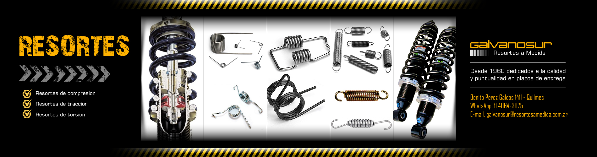 FABRICACIÓN DE RESORTES A MEDIDA en alambre 1070 ó inoxidable en diámetros de 0.20 a 14 mm. Fabrica de Resortes de compresión - Fabrica de Resortes de torsión - Fabrica de Resortes templados - Fabrica de Resortes de tracción - Fabrica de Resortes especiales - Fabrica de Resortes cónicos - Galvanizados de resortes - Pavonados y Zincados de autos y motos.
